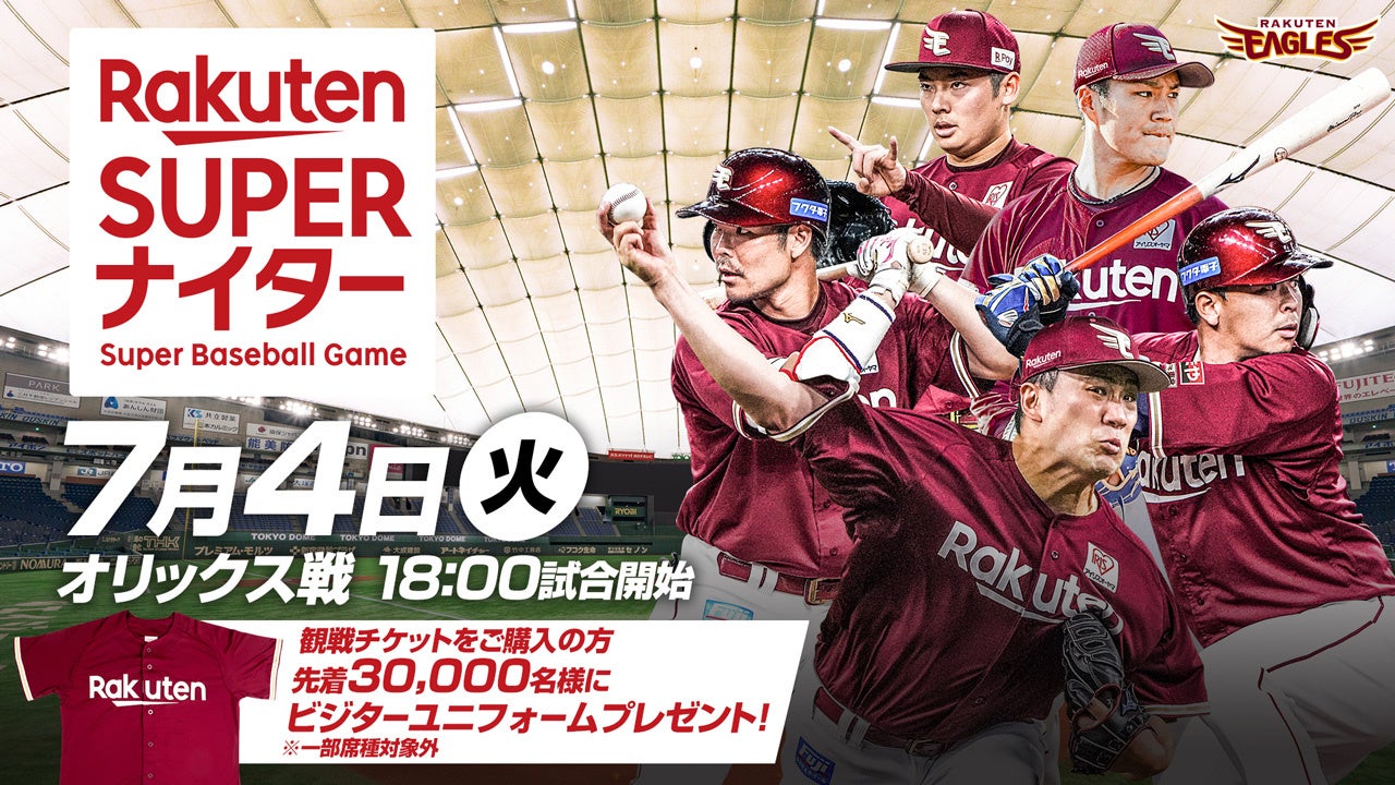 なお当日は、楽天イーグルスの選手がビジターユニフォームを着用して闘います。指定のチケット販売所でチケットをお買い求めいただき、当日ご来場いただいたお客様先着30,000名にビジターユニフォームをプレゼントいたします。