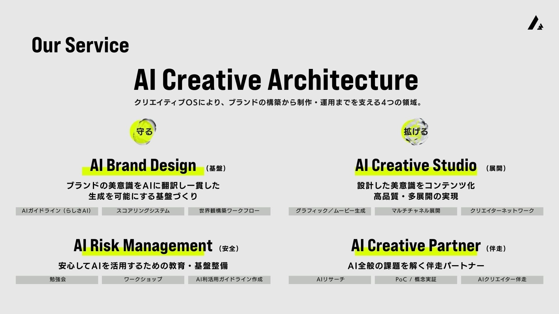 ▼ サービス概要|ブランドの構築から制作・運用までを支える4つの領域