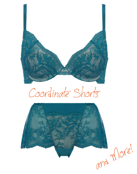 レギュラーショーツの他に、はきこみ深めショーツも展開。おなかをすっぽりと覆うMaxi丈で、フレンチパンティの様なシルエット。締め付け感のないリラックス感あふれるショーツです。ヒップは被りが少なく、下辺が少しチラ見えするセンシャルなデザイン。ブラと合わせてロマンティックなコーディネートが楽しめるラインナップです。