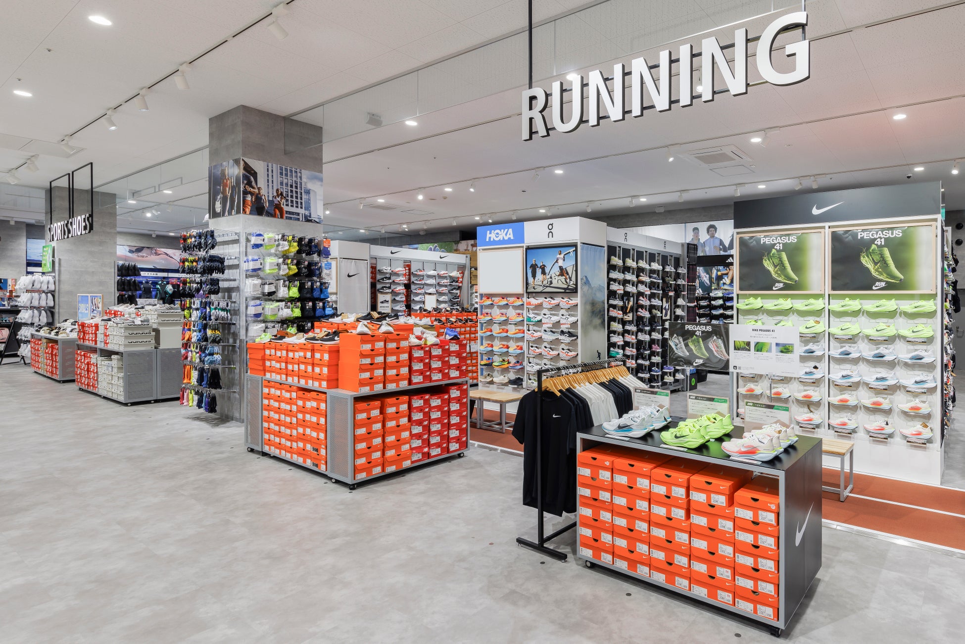 カジュアルからトレーニングまで、スポーツカジュアルファッションを存分に楽しむことが可能です。また、ランニングシューズコーナーでは、リニューアルに伴い、3D足型測定器を設置しました。よりお客様の足に合ったシューズがお選びいただけるだけではなく、カスタムインソールの作成も可能となりました。