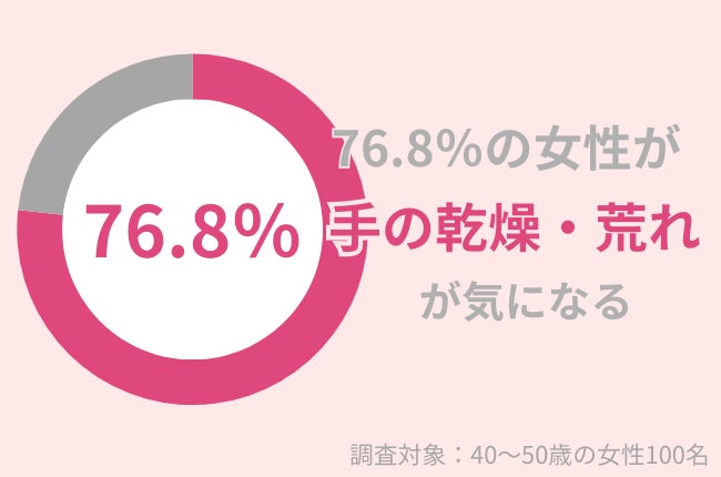 調査の結果、76.8%の40代女性が「手の乾燥や荒れ」が気になることが分かりました。