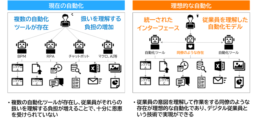 AIを活用したデジタル従業員により、従業員の意図を理解した作業支援、複数システムに関連する一連の作業の自動化を行う
