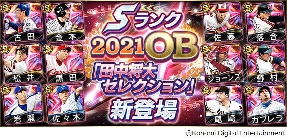 株式会社コナミデジタルエンタテインメントは、モバイルゲーム『プロ野球スピリッツA(エース)』(以下、『プロスピA』)において、東北楽天ゴールデンイーグルスで活躍する田中将大投手が厳選した選手が登場するスカウト「2021OB田中将大セレクション」を本日12月28日(火)15:00からスタートします。