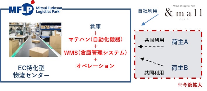 2022年11月に、三井ショッピングパーク公式通販サイト「&mall(アンドモール)」の物流拠点として、自動化機器を導入した「EC特化型物流センター」を「MFLP船橋Ⅲ」内に開設し、自社利用を開始しております。