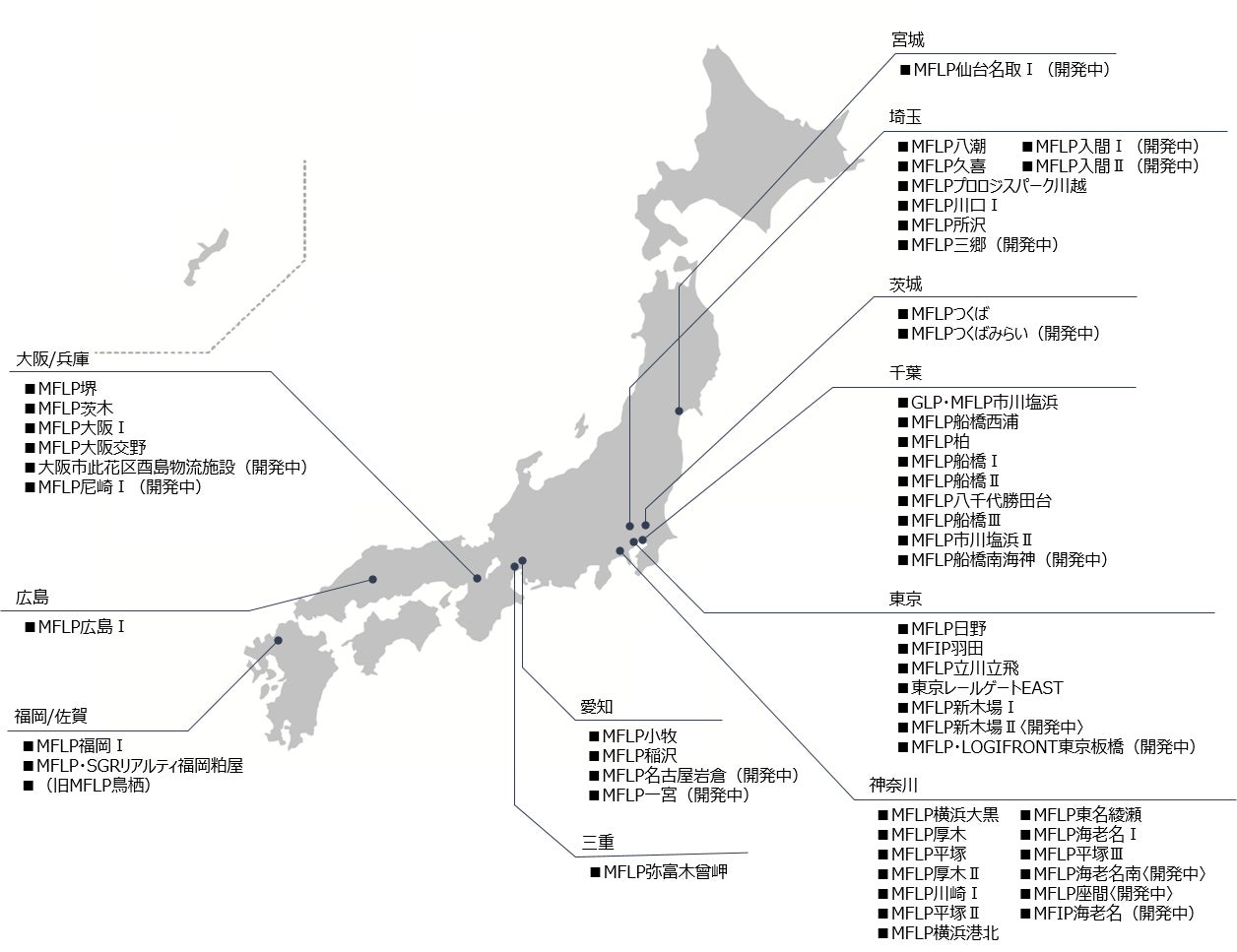 | 物件数 | 国内:58物件 海外:4物件 計62物件 ※今般発表の6物件を含む(竣工稼働施設:国内43物件・海外1物件) |