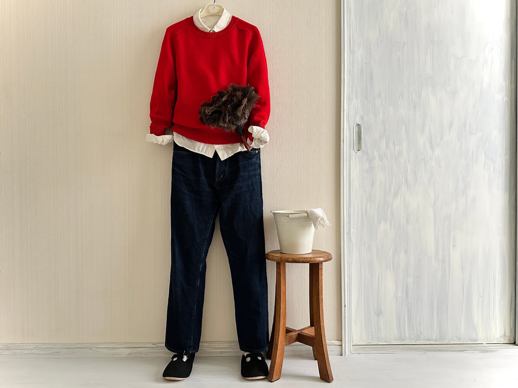 還暦祝いにはちょっと奮発して上質な赤いニットを買いました。普段は節制していても、ここぞ! というときは思い切ります。