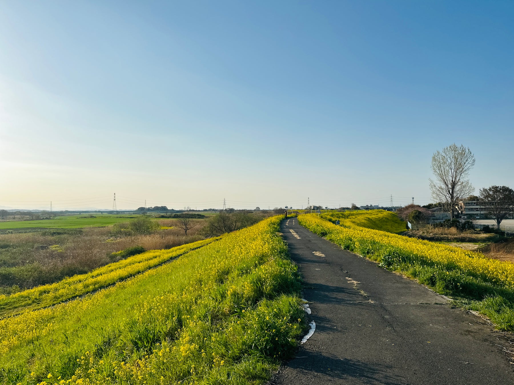 運動不足が気になると夕方、日が暮れる少し前に散歩に出かけます。家の近くの土手は、ぐるりと空を見渡せる最高の散歩コース。