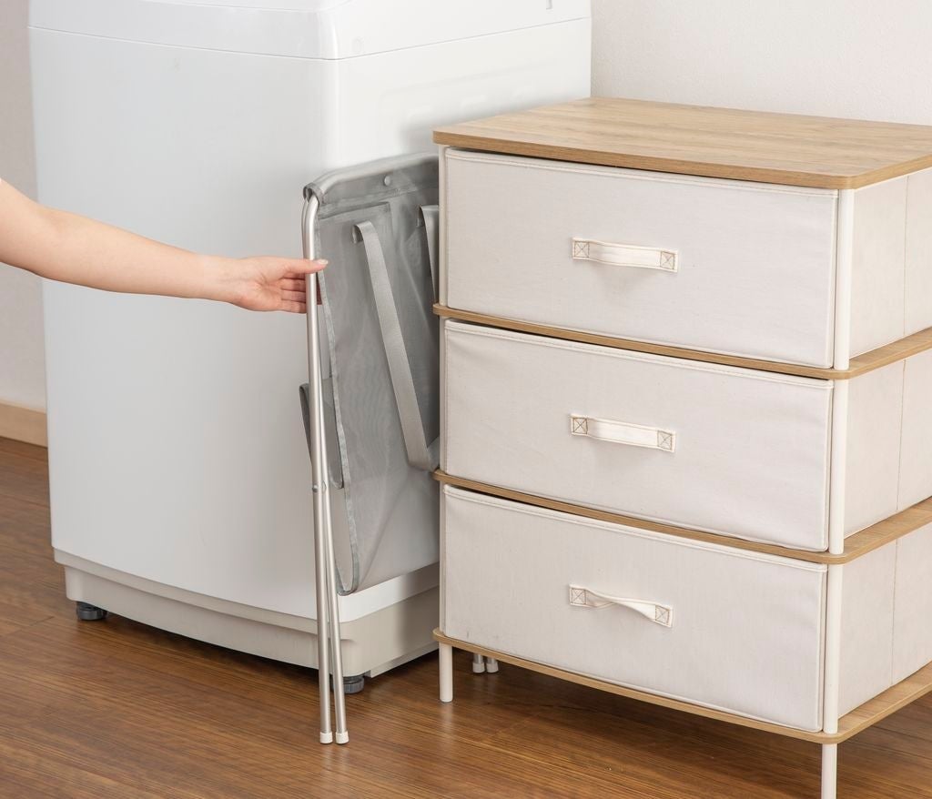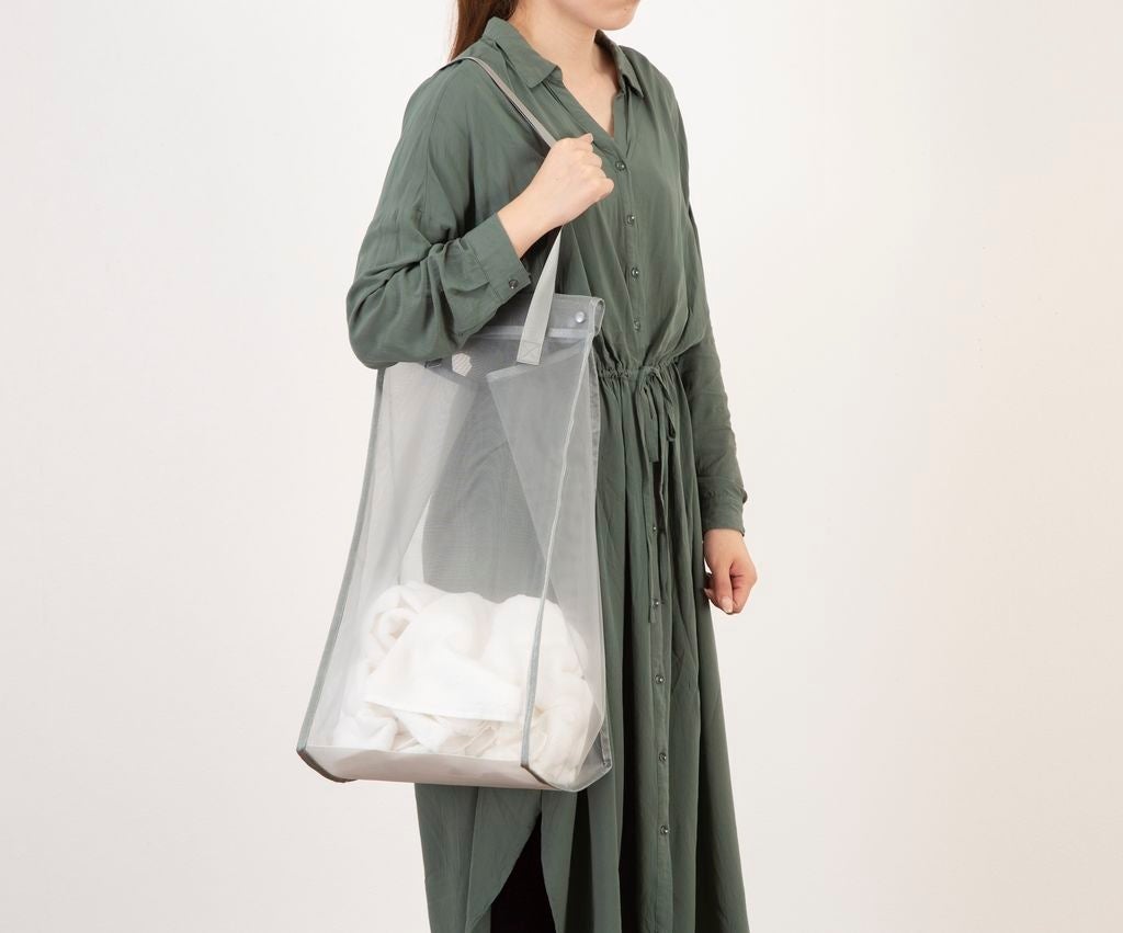 ななめ掛けできるので一番楽に、屈まず洗濯物を取り出したり干したりできるアイテムです。
