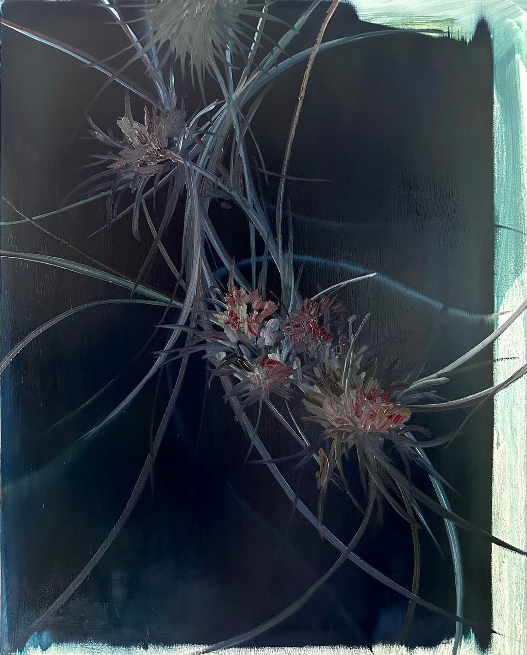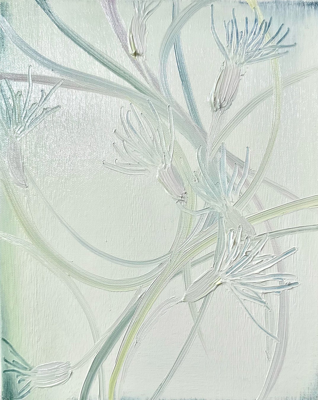 毎日同じように見える景色にはその一瞬にしかない美しさ、二度と出会えない神秘が潜んでいる。杉山はそれを再現できない絵として起こしています。宮崎のトロピカルな情景と空気、太陽に向かって伸びていくような季節をイメージした作品からは、これまでにも増して生命の強い宿りと豊かな感情の流れを感じ取ることができます。