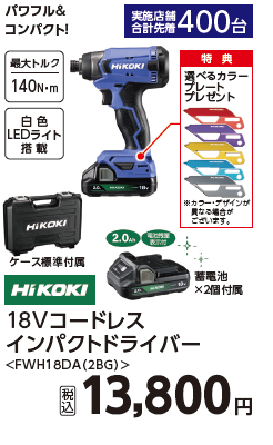商品名:HiKOKI 18Vコードレスインパクトドライバー