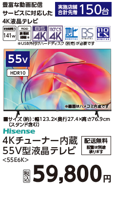 商品名:Hisense 4Kチューナー内蔵55V型液晶テレビ
