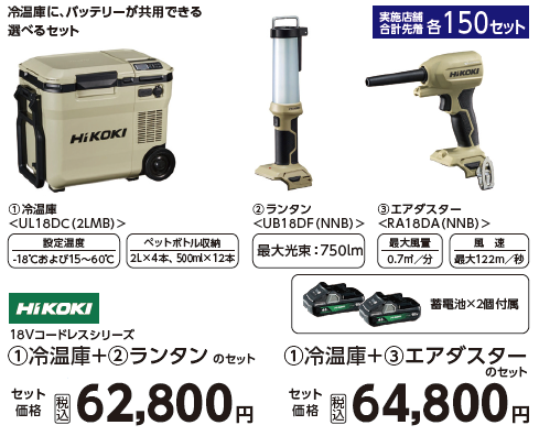 ①冷温庫<UL18DC(2LMB)>+②ランタン<UB18DF(NNB)> セット