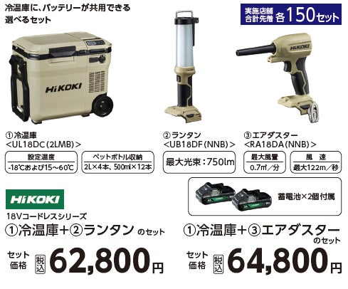 冷温庫にバッテリーが共用できるランタンかエアダスターの選べるセット