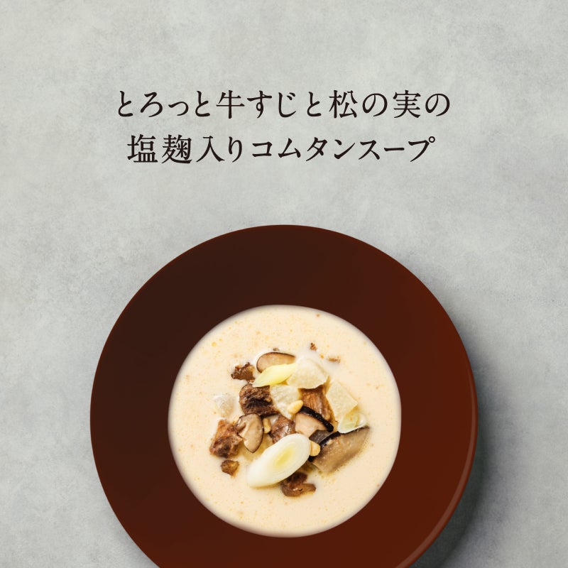 「とろっと牛すじと松の実の塩麹入りコムタンスープ」 税込700円