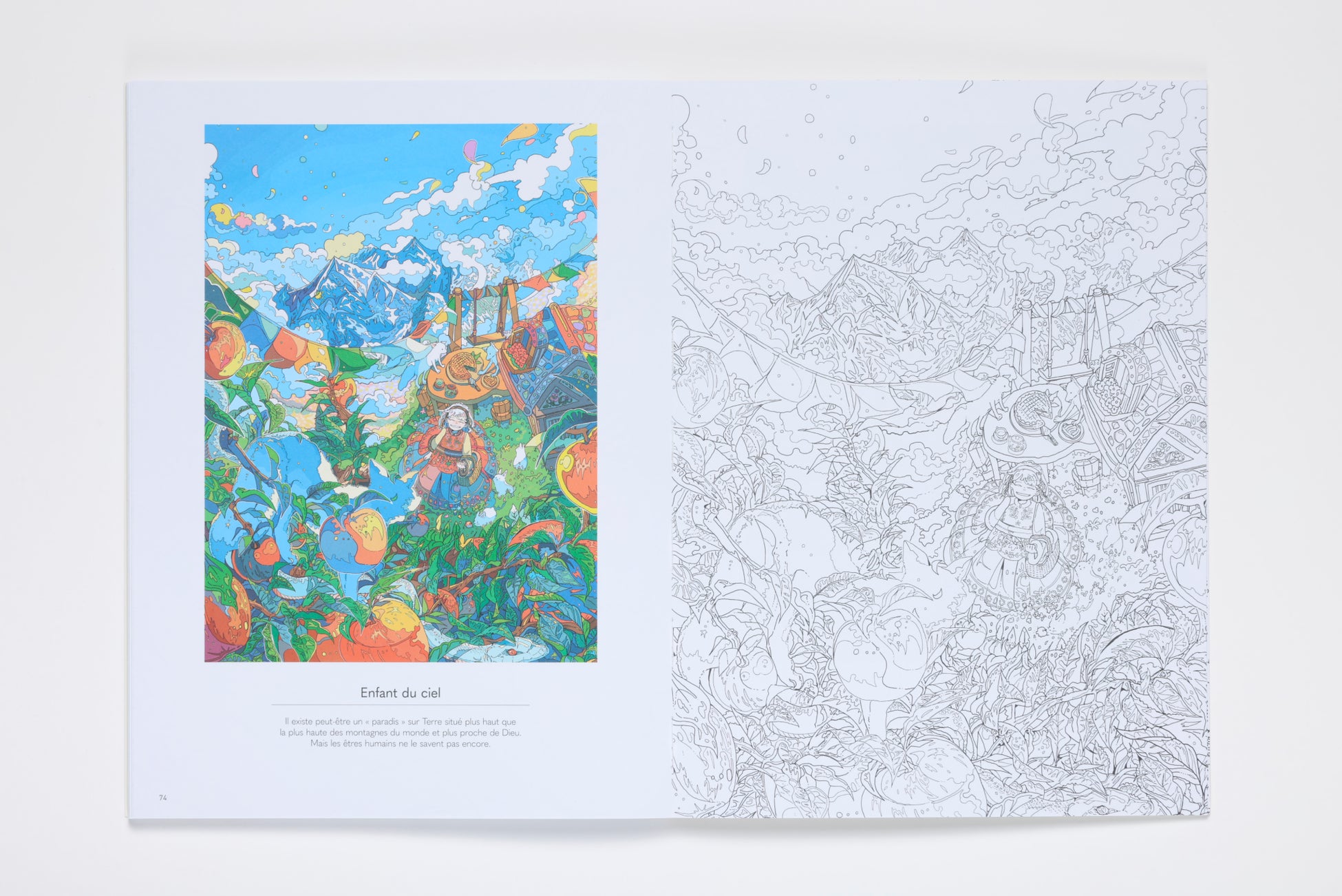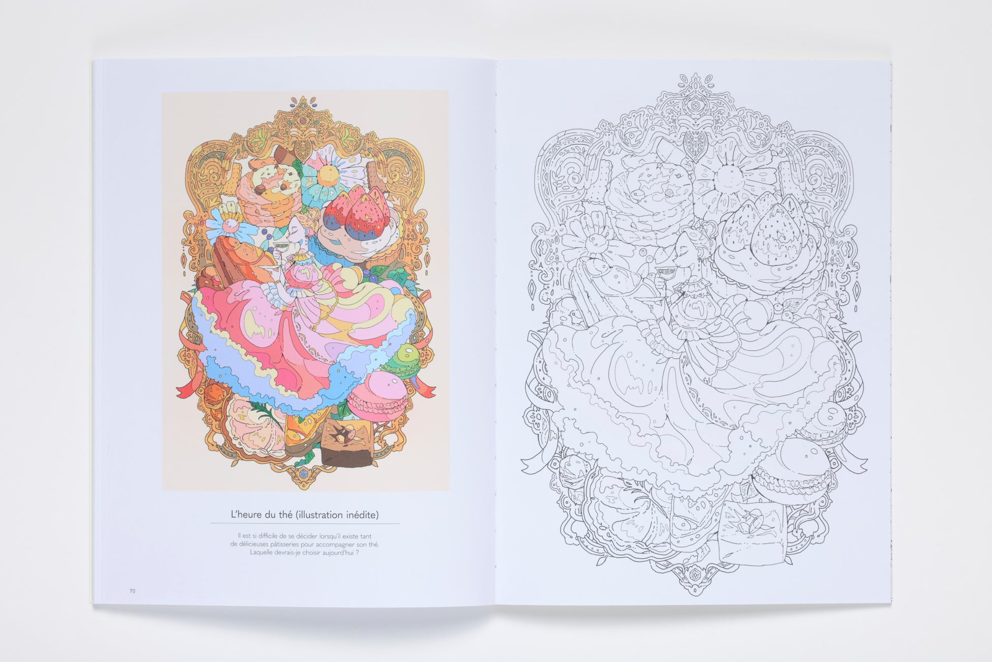 英語(イギリス版・北米版)、フランス語、ドイツ語、ロシア語にも翻訳され、世界中で話題となっています。本書は、描き下ろしイラスト5点を含めた、全35点の塗り絵を収録。美しく彩色された見本(元絵)と塗り絵を見開きで掲載。