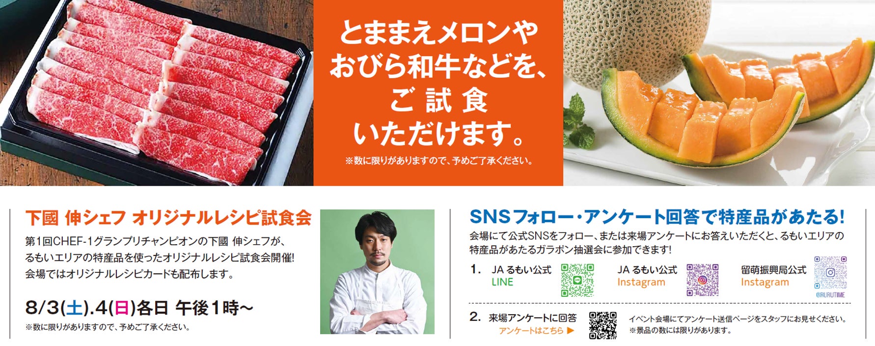 【北海道のひだり上るもいフェア】8月3日(土)、4日(日)に玉川高島屋S.C.アレーナサロンで、るもい地域の特産品の販売・試食のイベントを開催します