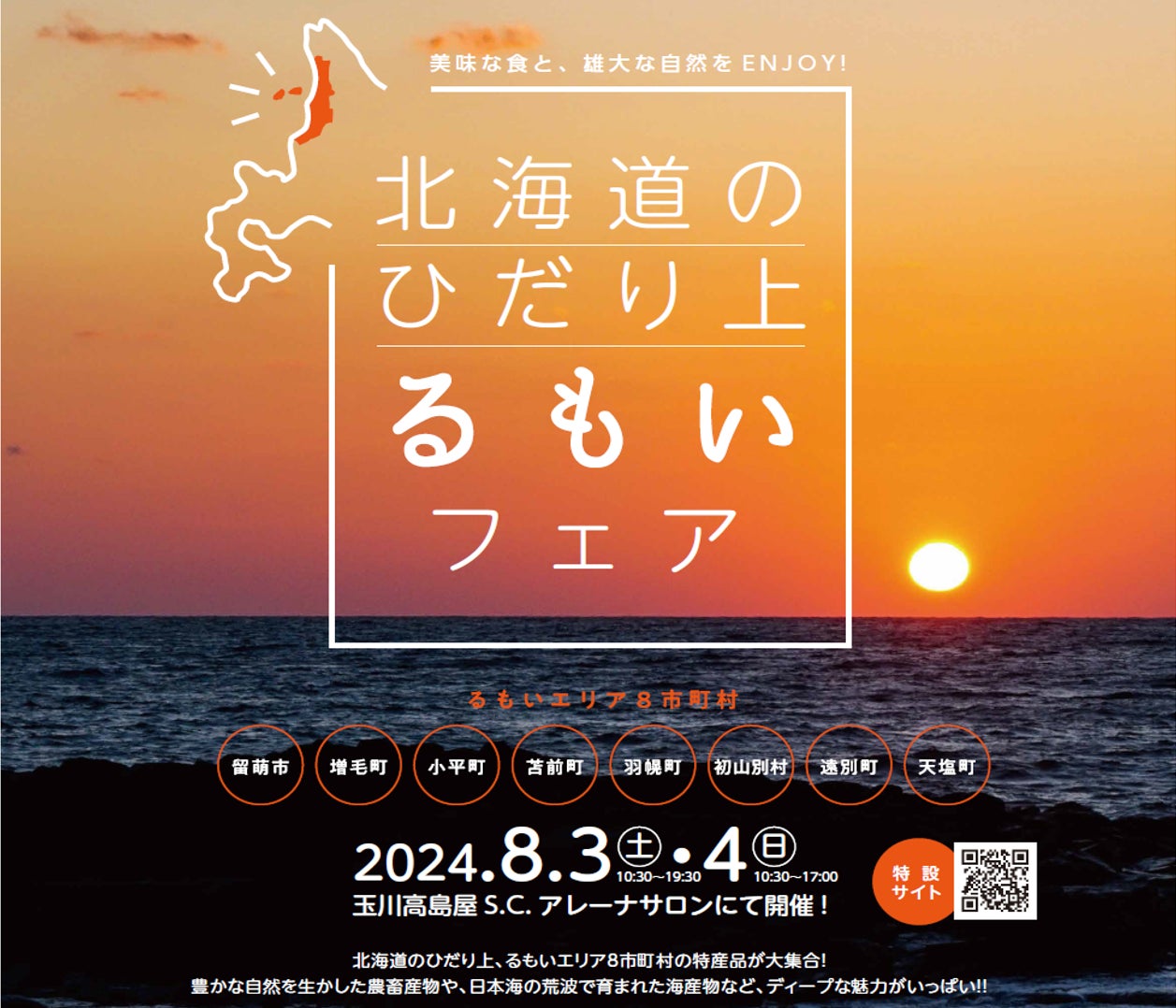 そんな留萌地域の特産品を販売・試食・抽選会でPRする『北海道のひだり上 るもいフェア』を、8月3日(土)、4日(日)に、玉川高島屋S.C.アレーナサロンで開催します。