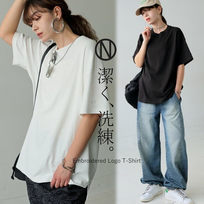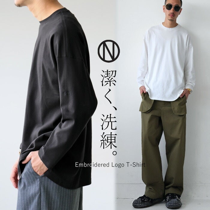 刺繍ロゴは袖に同色で配置し、控えめながら存在感のあるワンポイントに。