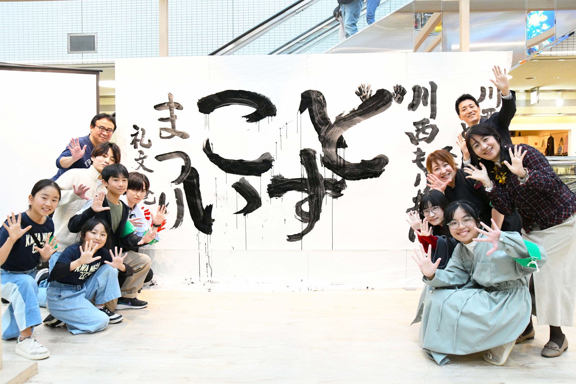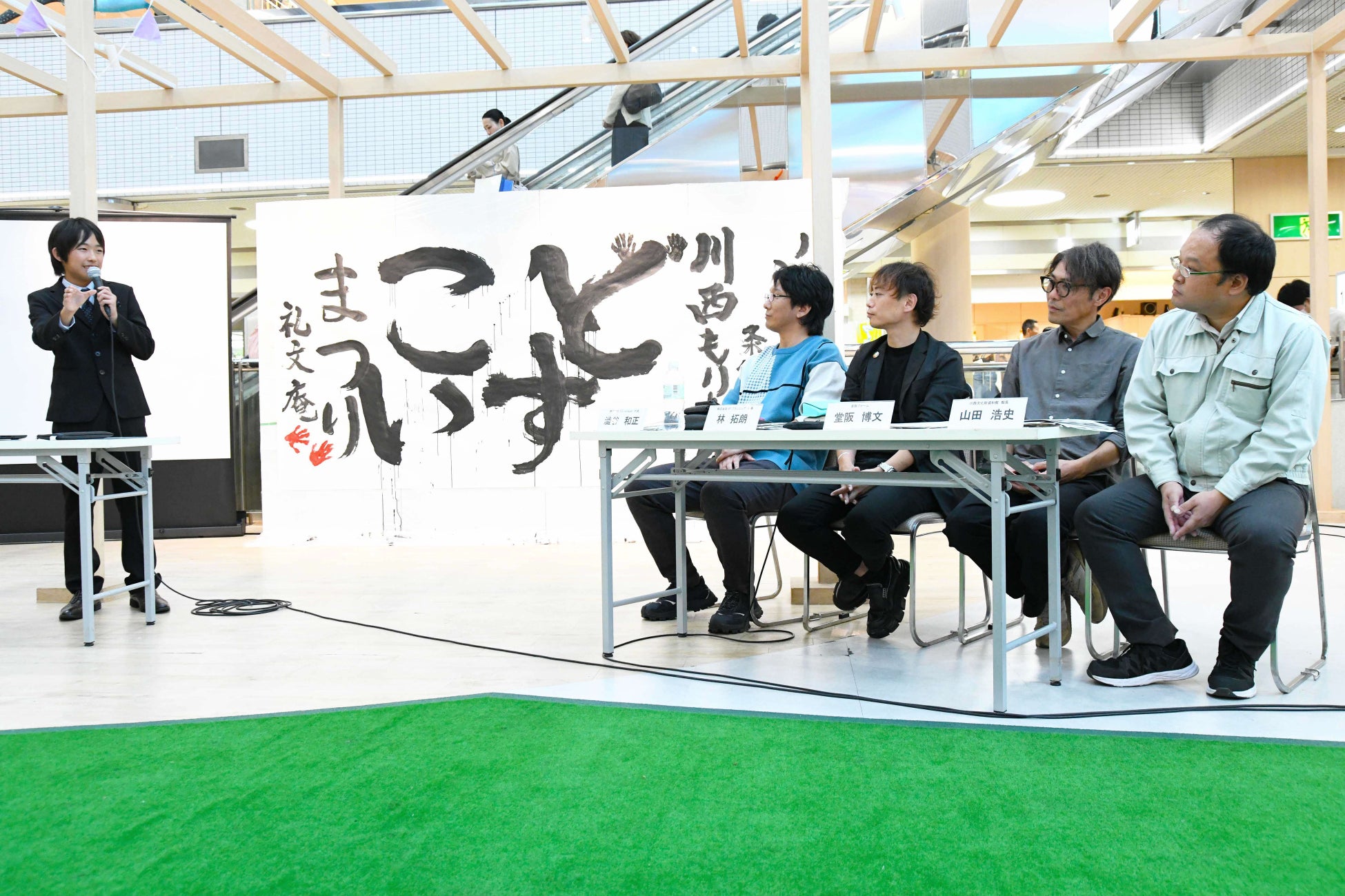 他に、会場にいるこども・若者の想いを直接市長へ届けるこっしー直通便(市公式Instagramアカウントでも生配信)、礼文庵習字教室代表の曽根杏雪さんらによる 書道パフォーマンス、歴史や食など川西の「推し」についてのプレゼンバトル、地元若手アーティストの愛生-Mei-さん、金島準一郎さんによる音楽LIVEなどが行われ、会場はイベント参加者や会場のアステ川西に買い物に来ていた親子連れなどで大盛況でした。