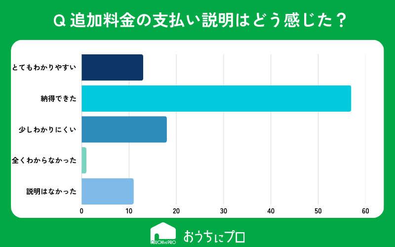 追加料金発生時の説明には7割ほどが納得できているが、説明に納得がいかなかったり、そもそも説明がなかった人もいる。
