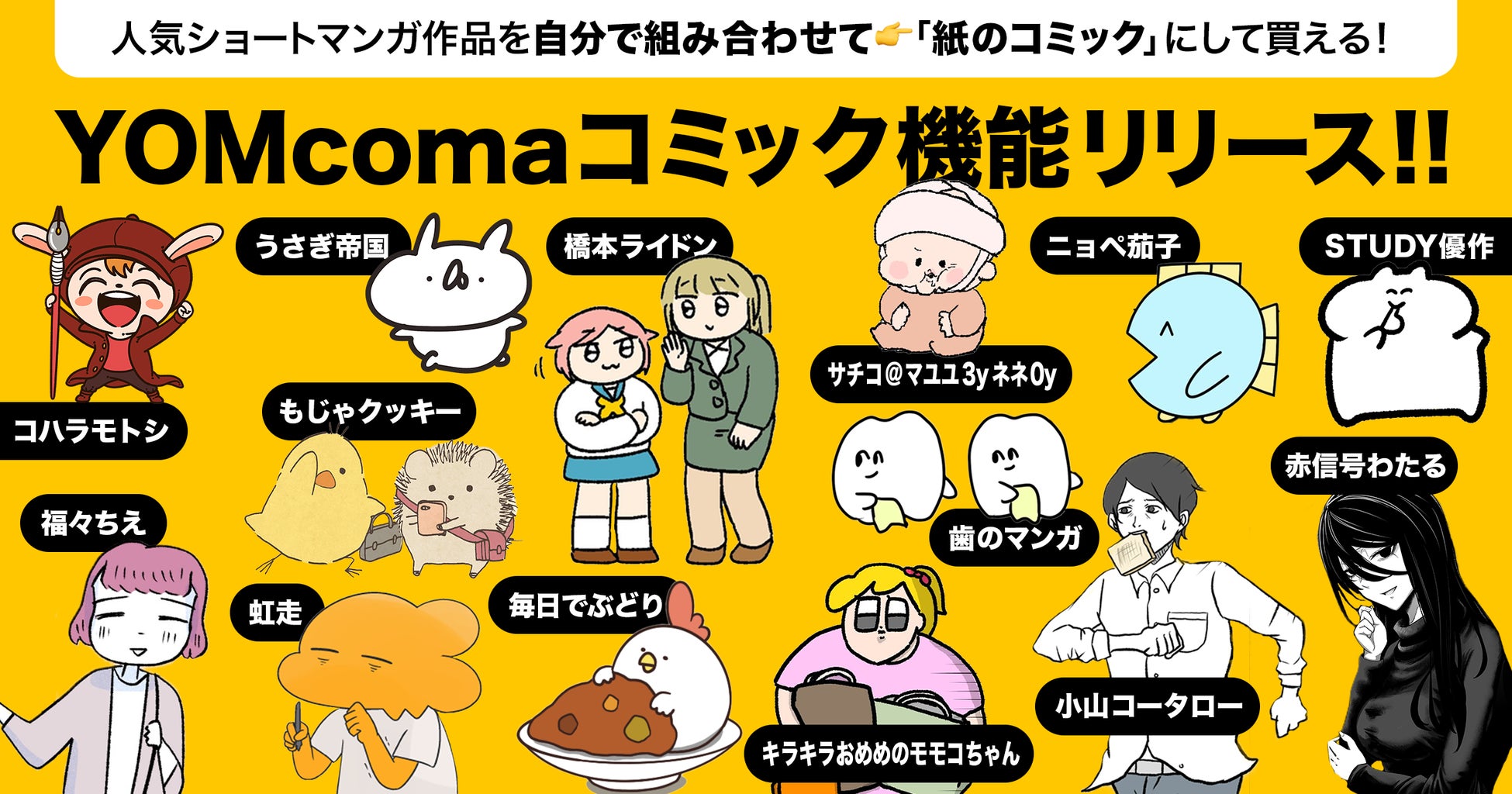「YOMcoma」は、ショートマンガを創作するクリエイターひとりひとりの「なりたい姿」を応援しています。クリエイターが創作を継続するために重要な収益化に着目し、その一環として「マンガ作品の収益化」をいろいろな手段で実現できるアイディアをテストしています。今回、その新機能第1弾として、「YOMcoma」に投稿されたマンガ作品を紙のコミックとして販売できる「YOMcomaコミック」の機能をリリースしました。