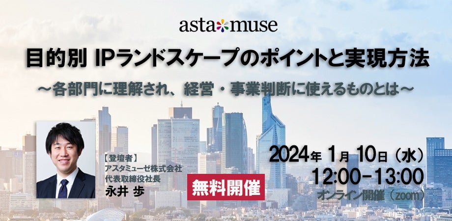 知財担当者・R&D部門・経営者向け無料セミナー「目的別IPランドスケープのポイントと実現方法 ~各部門に理解され、経営・事業判断に使えるものとは~」を1月に再開催