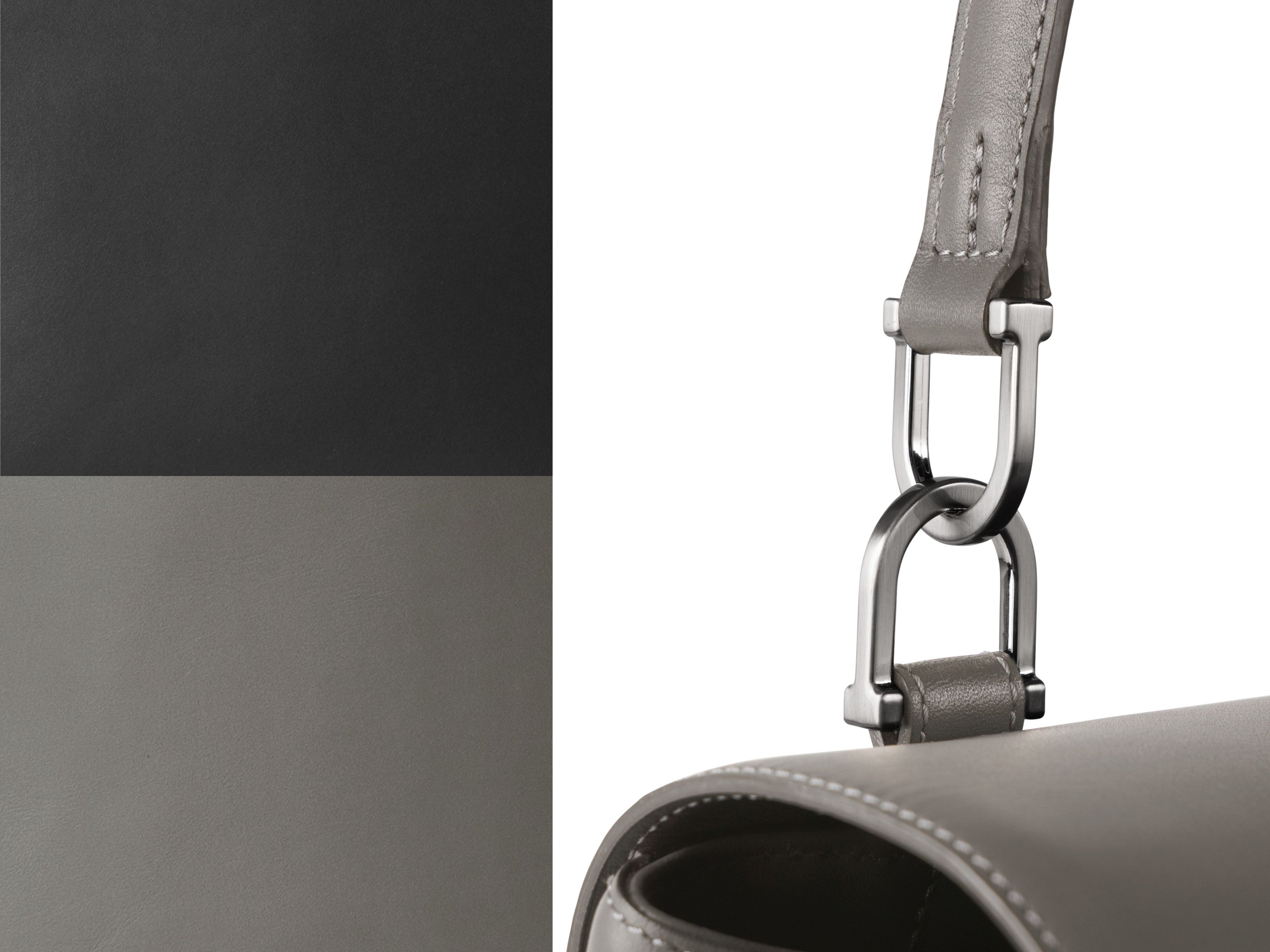「スチールグレー」は、さまざまなスタイリングに溶け込む、落ち着いたトーンが魅力です。同系色のシルバー金具と調和し、より一層上品な印象を与えます。