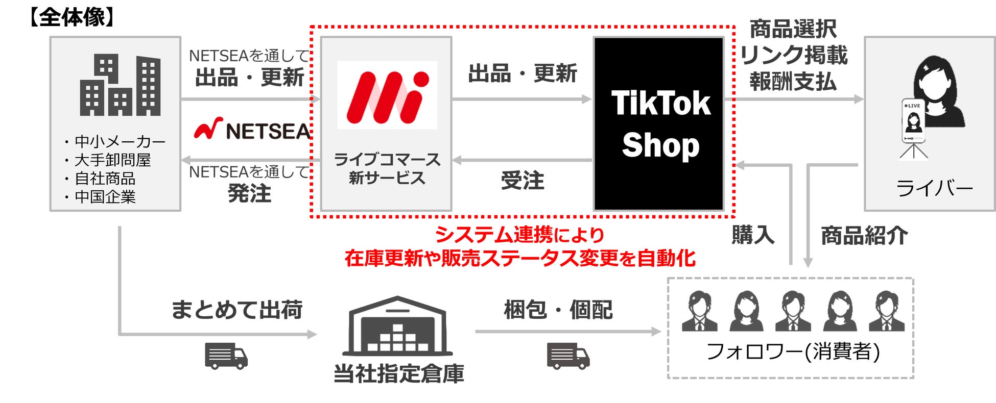 オークファングループの子会社SynaBizが運営するBtoBマーケットプレイス「NETSEA」において、TikTok Shopとのシステム連携を通じた新たなライブコマースサービスを提供してまいります。