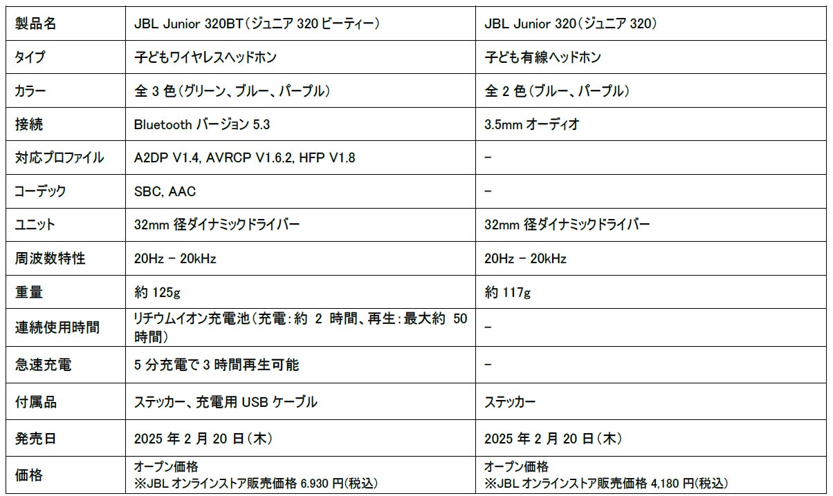 ハーマンインターナショナル株式会社(本社:東京都千代田区、代表取締役:桑原拓磨)は、アメリカ カリフォルニア発祥の世界最大級のオーディオブランドであり、日本においてワイヤレススピーカー7年連続販売台数No.1※2に輝く「JBL」より、2017年に発売以降、国内出荷台数約10万台を突破した大人気子ども用ヘッドホンのJuniorシリーズから、「Junior 320BT(ジュニア320ビーティー)」「Junior 320(ジュニア320)」を2025年2月20日(木)に発売いたします。
