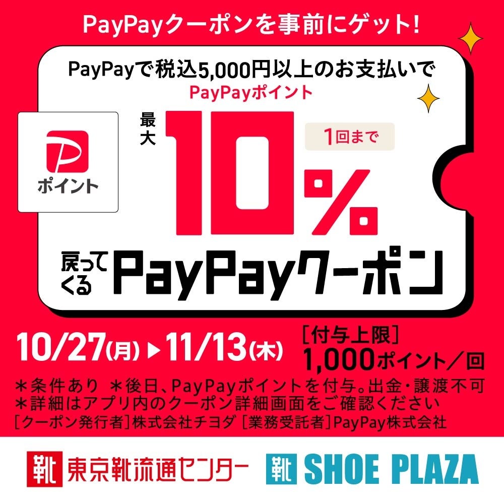 期間中、PayPayで5,000円(税込)以上のお支払いをすると、PayPayポイントが最大10%戻ってくるPayPayクーポンを配信中!