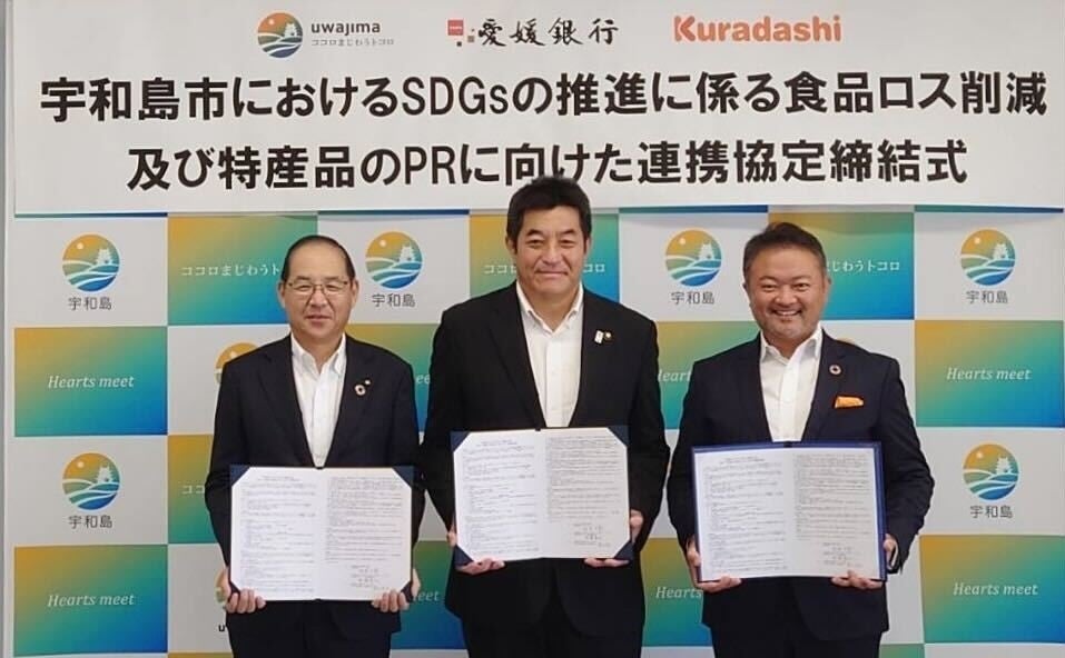 クラダシ、宇和島市、愛媛銀行が地域活性・フードロス削減に向けて連携協定を締結