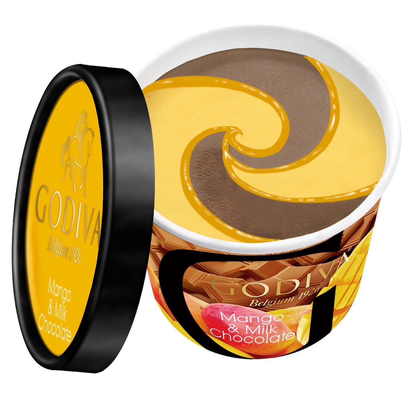 厳選したクーベルチュールを使用したミルクチョコレートアイスクリームに、濃厚なマンゴーアイスクリームとマンゴーソースを加えました。完熟したマンゴーを食べているかのようなフレッシュな味わいが、濃厚なミルクチョコレートアイスと重なり合い、爽やかな甘さのアイスクリームです。
