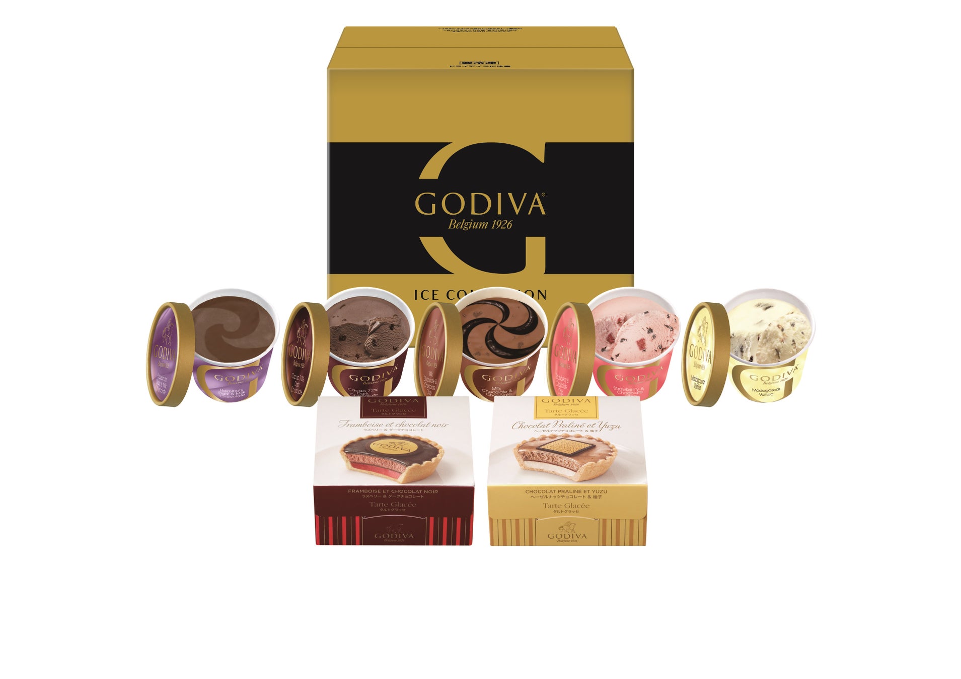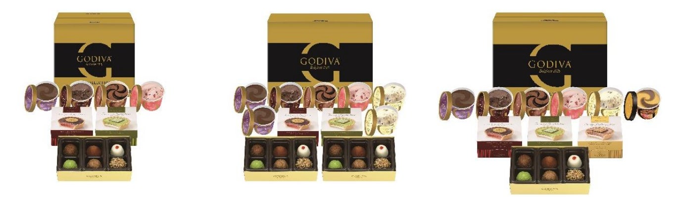 「アイスギフトセット」は、シェフが考案した本格的なレシピによる、定番フレーバーや季節限定フレーバーを詰め合わせ、ゴディバのプレミアムなチョコレートをさまざまなフレーバーのアイスクリームで味わえるセットとなっています。