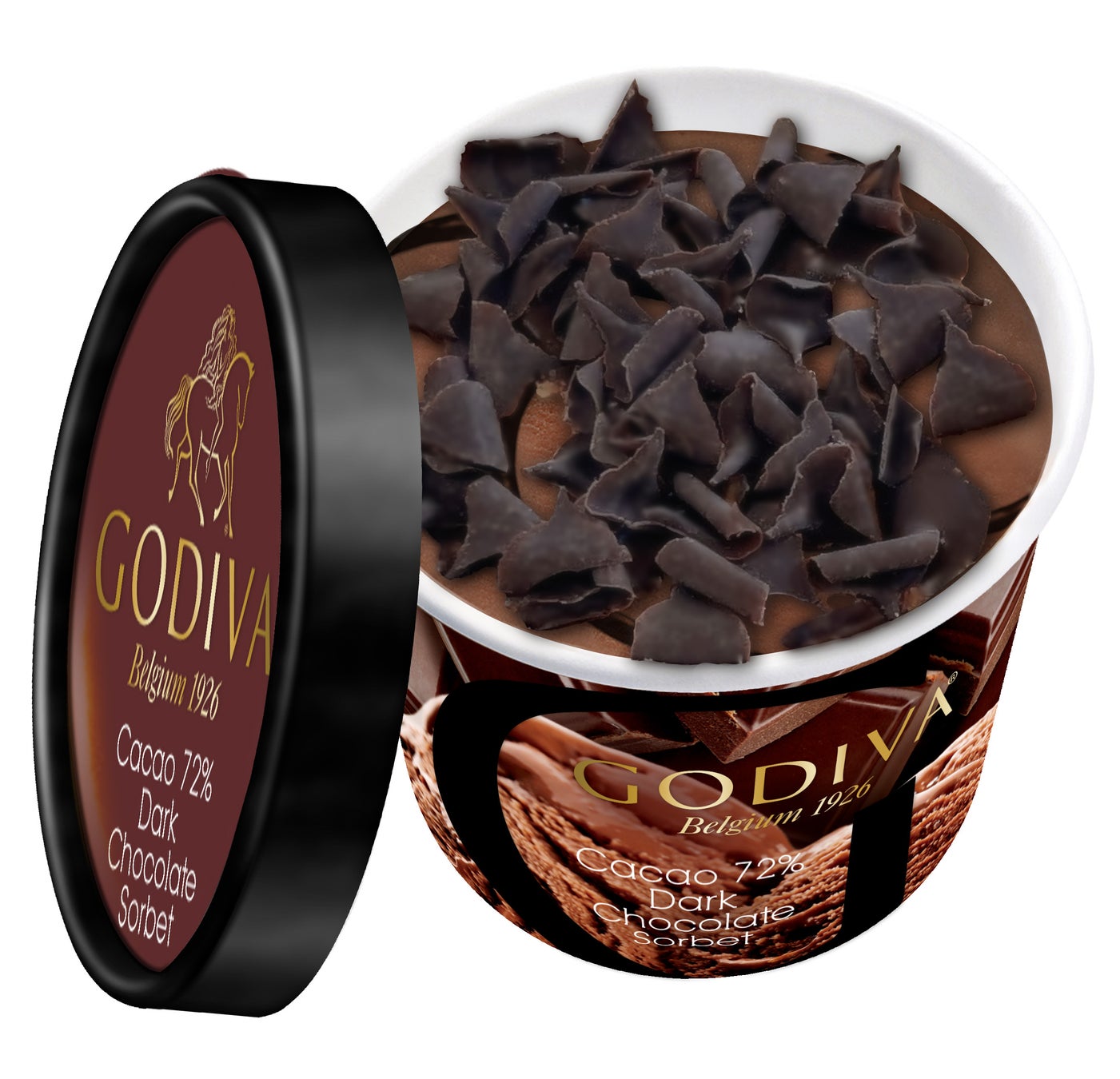 厳選したカカオ72%のダークチョコレートクーベルチュールを使用した、すっきりとした甘さのダークチョコレートソルベ。濃厚なチョコレートソースとチョコレートカールズチップが、ソルベと混ざり合い、カカオの美味しさを存分に楽しめます。