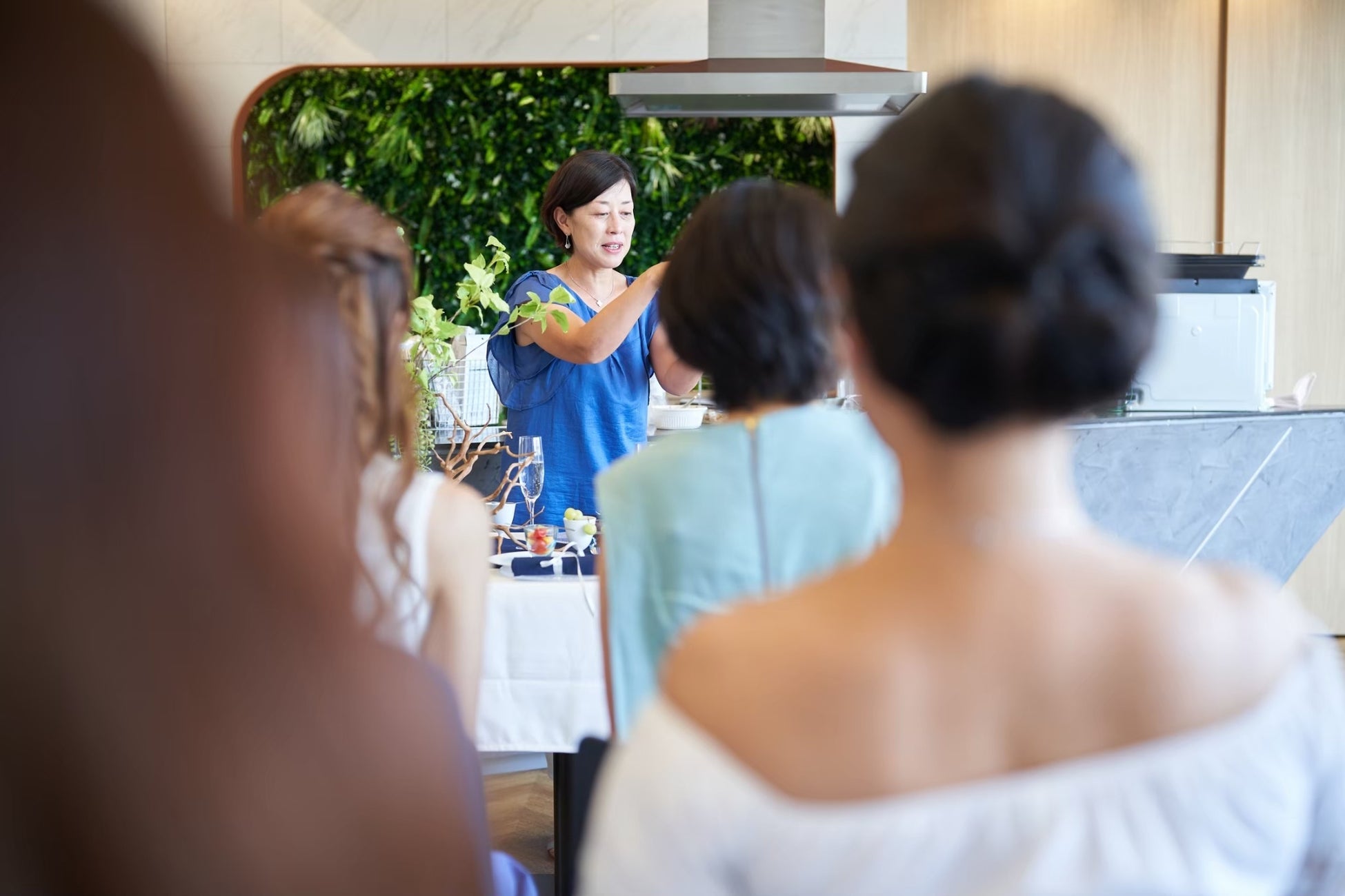 授業では、テーブルコーディネートやホームパーティー企画について講師に直接質問できるほか、受講生による卒業制作の登壇発表を間近で見学いただけます。また、懇親会では参加者同士の交流をお楽しみいただけます。