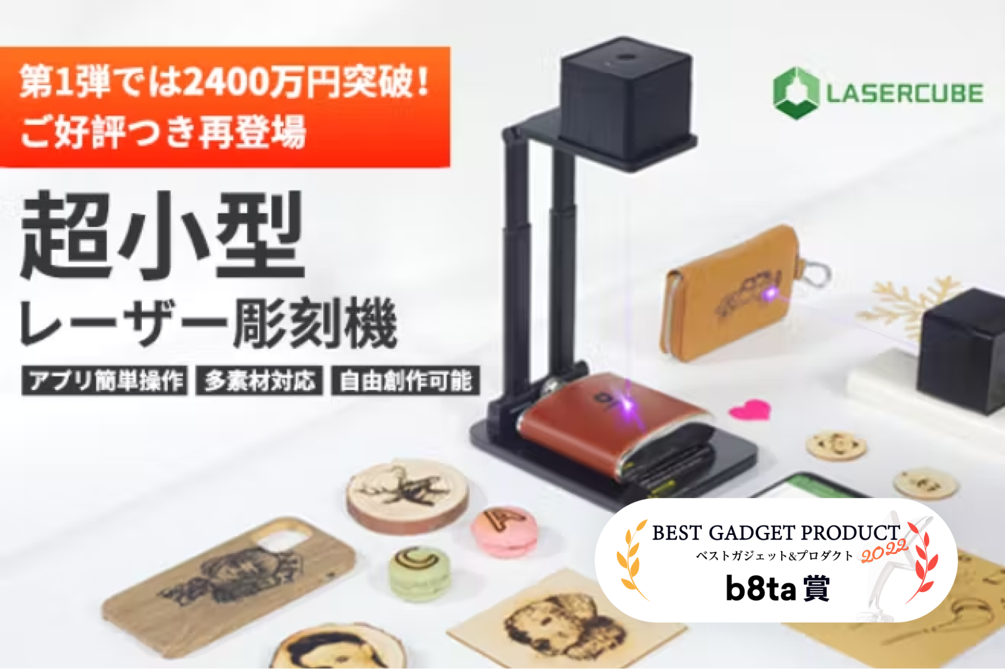大好評・第2弾!高性能ながら超コンパクト!レーザー彫刻機LASERCUBE100:https://camp-fire.jp/projects/view/530784