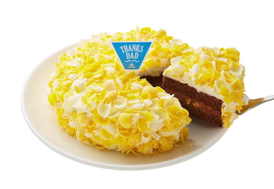 二層仕立ての贅沢なチョコレートチーズケーキ。クリームチーズをベースとした生地に、ココアパウダーでチョコレートの風味を加えて焼きあげ、天面には チョコレートガナッシュを流しました。お父さんへの感謝のメッセージをのせたケーキはプレゼントにもぴったりです。