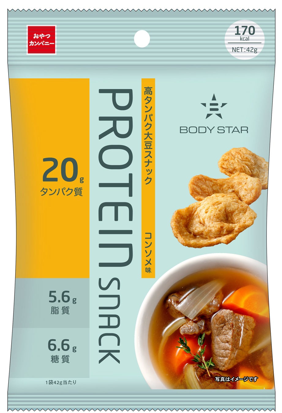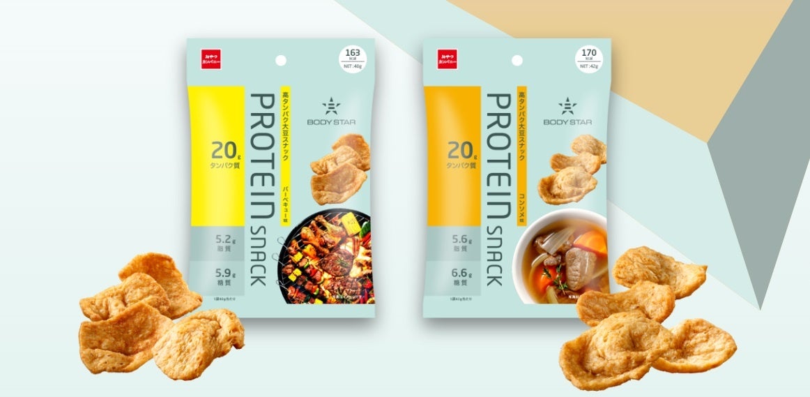 ユニークで美味しい“おやつ”を提供し続けてきたおやつカンパニーのスナック菓子製造ノウハウを活かし、楽しみながらも手軽に栄養補給ができる新ブランド『BODY STAR』として「タンパク質」に着目した商品を展開。おやつ感覚ながら“数値で語れる”量の提供をコンセプトに展開する『BODY STAR プロテインスナック』は、大豆を使った生地をスナック菓子らしい味付けで仕上げることで、1袋あたりタンパク質20g・食物繊維4gの効率的な摂取とスナック菓子らしい美味しさの両立を実現。カリカリッとしたハードな食感としっかりとした味付けで、無理なく美味しく楽しみながらカラダメンテができる、これまでにない商品として2021年3月に登場しました。