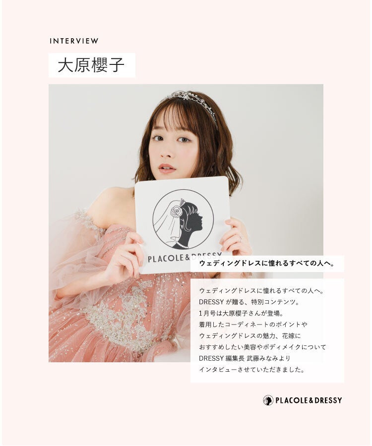 アーティスト/女優 大原櫻子さんが花嫁アプリ『PLACOLE&DRESSY』にウェディングドレス姿で初登場!ウェディングドレスに憧れるすべての人へのメッセージとは?