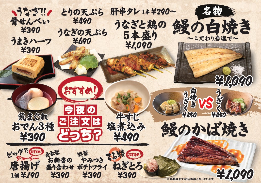 新橋の皆様のニーズにあわせて、もっと皆さまに愛されるお店にしたい!そんな思いから、「名代 うなまる酒場 新橋店」に新たなメニューが登場します!