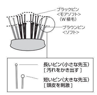 頭皮を傷つけないように、先玉状に仕上げました。この大小の先玉が心地よい使用感を生み出します。