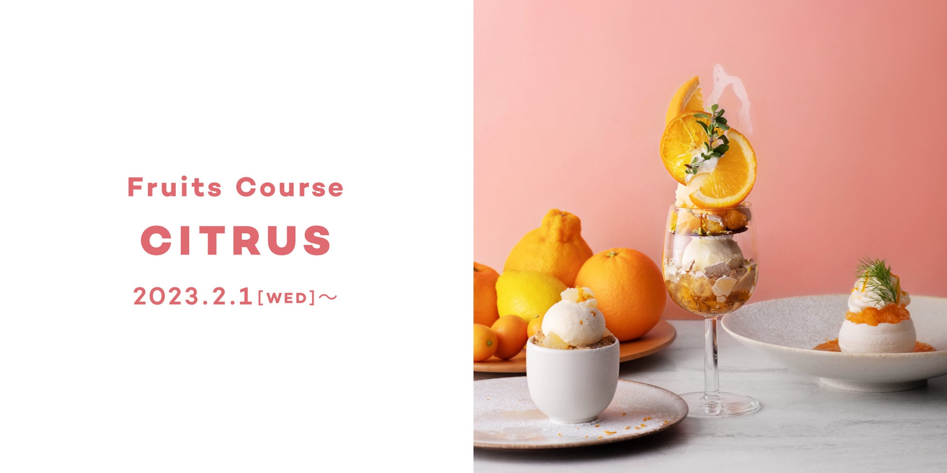 2023年はひと足お先に、柑橘の個性豊かな味わいを。銀座のデートに、さわやかなプレート、ほんのりあたたかいプレート、伊予柑パフェのプレートを3つ揃えてフルコース仕立てで楽しめるフルーツのフルコース。