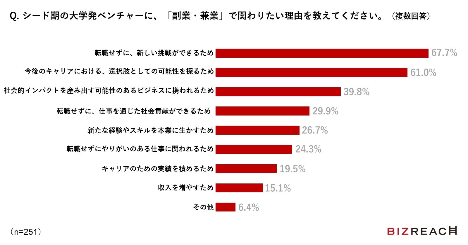 日本の経済活性化のために大学発ベンチャーがイノベーションの担い手として期待を寄せられているなか、大学発ベンチャーの仕事に興味を持つビジネスパーソンが多いことがわかる結果となりました。