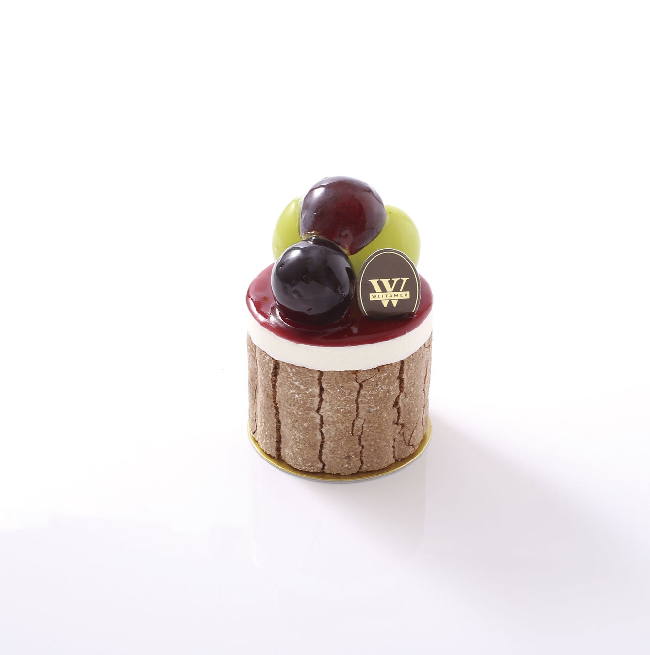 くちどけのよいレアチーズムースに甘酸っぱいカシスムースをしのばせ、ぶどうを乗せた秋らしい一品。さっぱりとした味わいです。
