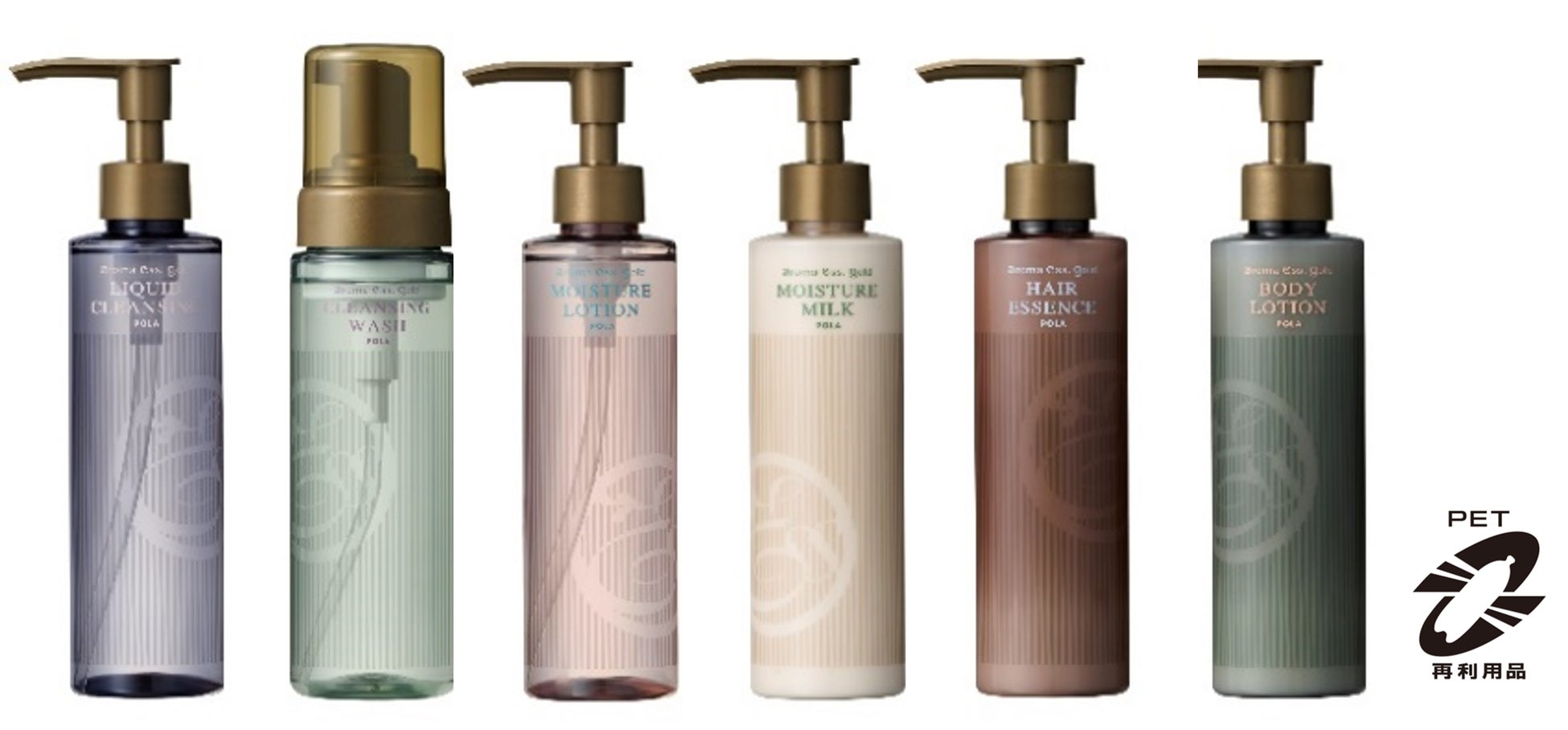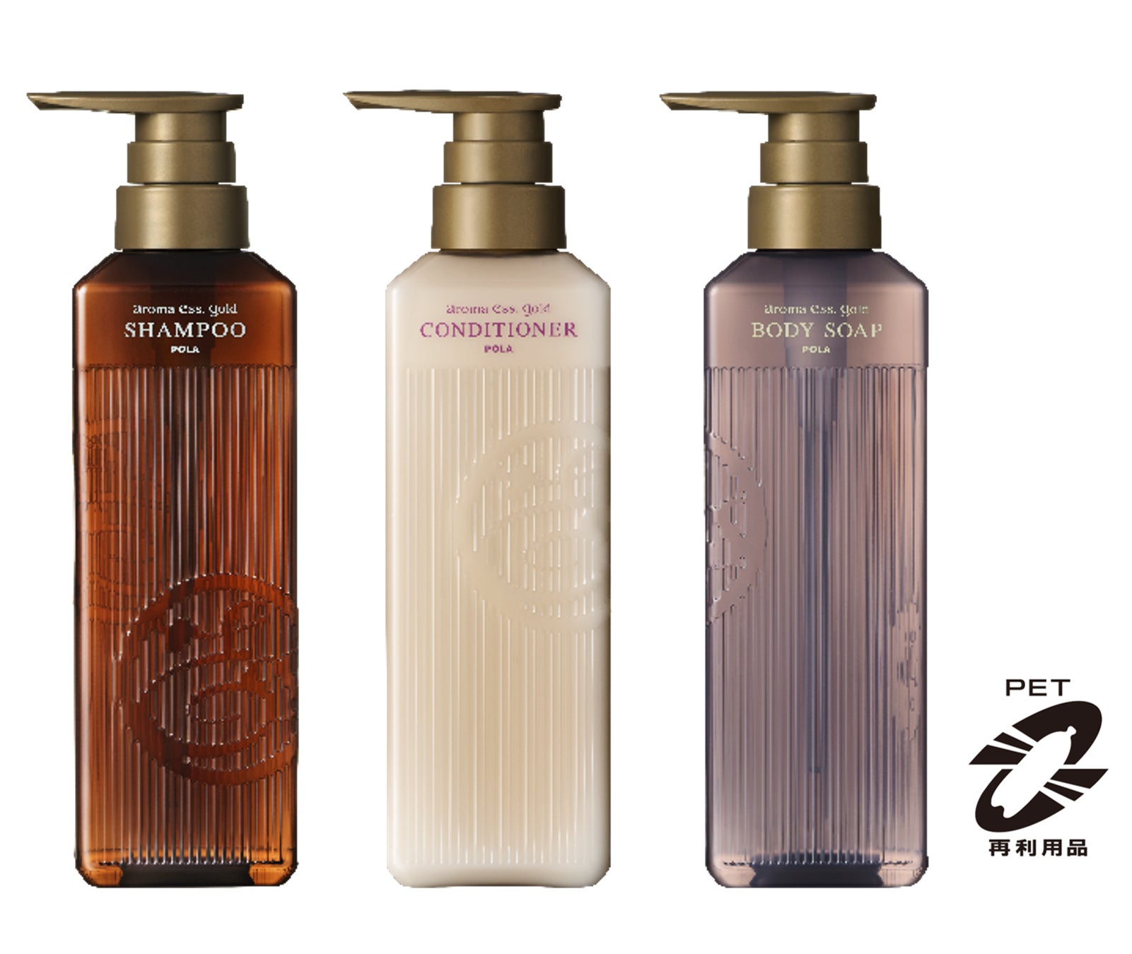 業界トップのシェアを有する※1 ポーラのホテルアメニティ※2から環境に配慮した素材を採用し、モダンでジェンダーレスなデザインに進化した 『アロマエッセゴールド』シリーズが新デザインでリニューアル発売
