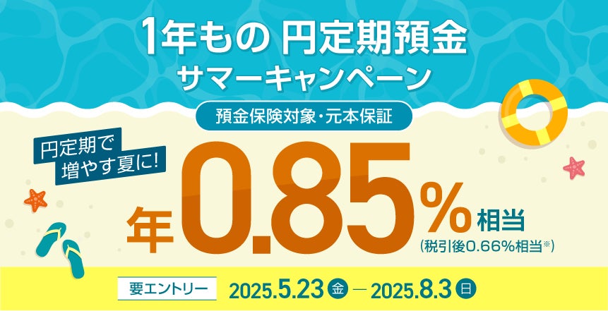 住信SBIネット銀行株式会社(本社:東京都港区、代表取締役社長(CEO):円山 法昭、以下「住信SBIネット銀行」)は、2025年5月23日(金)より「1年もの円定期預金 サマーキャンペーン」を開始しました。