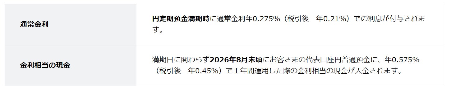 通常金利(年0.275%)と金利(年0.575%)相当を合わせて年0.85%相当の現金を還元