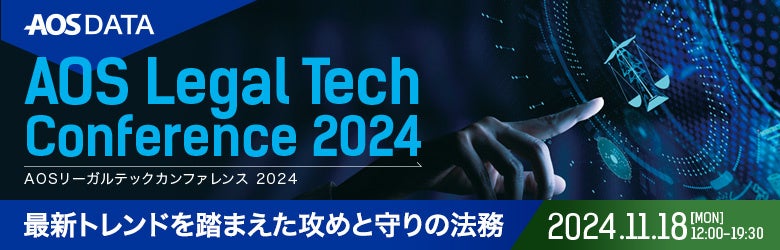 AOSデータ株式会社(本社:東京都港区、代表取締役社長:佐々木隆仁)は、2024年11月18日(月)に「AOSリーガルテックカンファレンス 2024」を開催いたします。