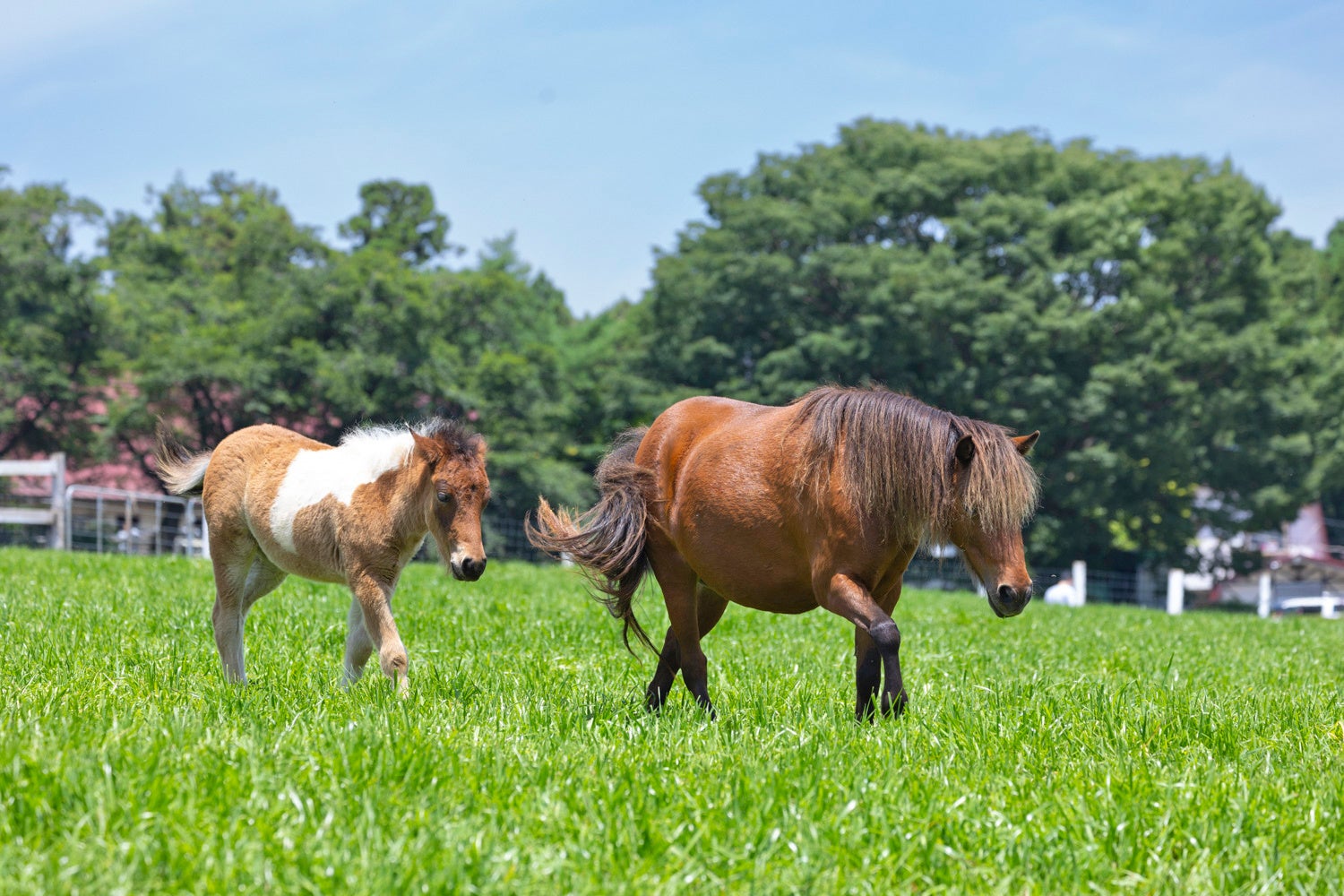 小さな体が特徴の馬「ミニチュアホース」とのふれあいや記念撮影、エサやり体験ができます。
