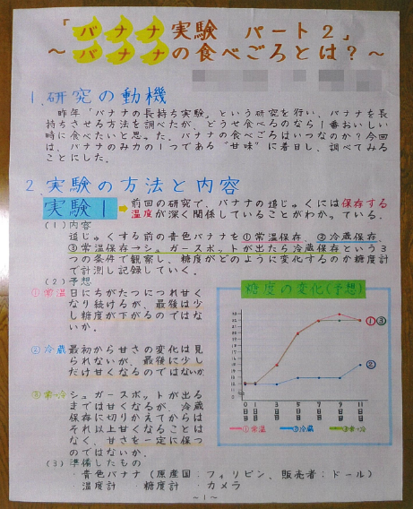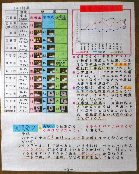 受賞理由:昨年度も応募してくれた「バナナの長持ち実験」をさらに発展させ、「バナナの食べごろはいつなのか」を解き明かしたこと。